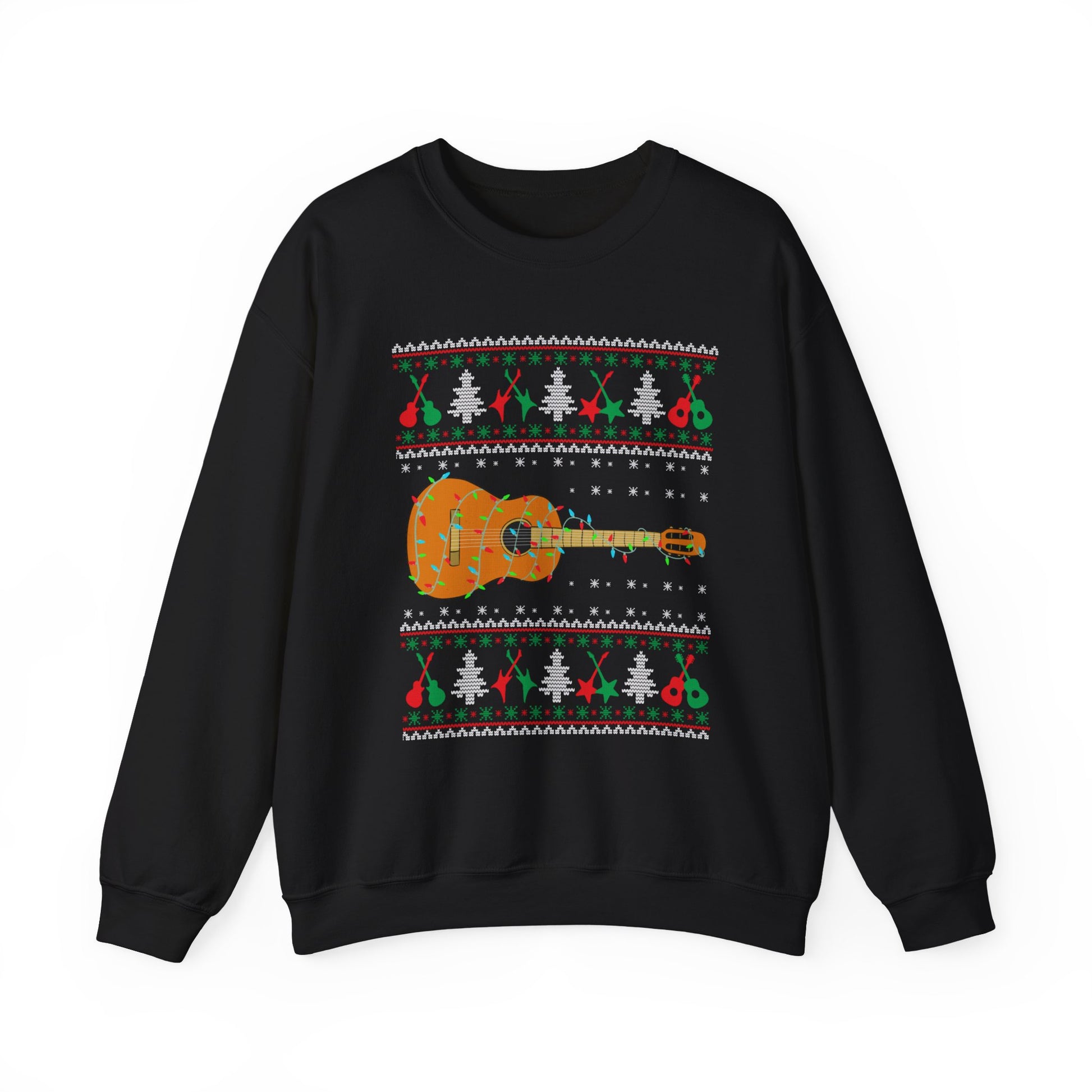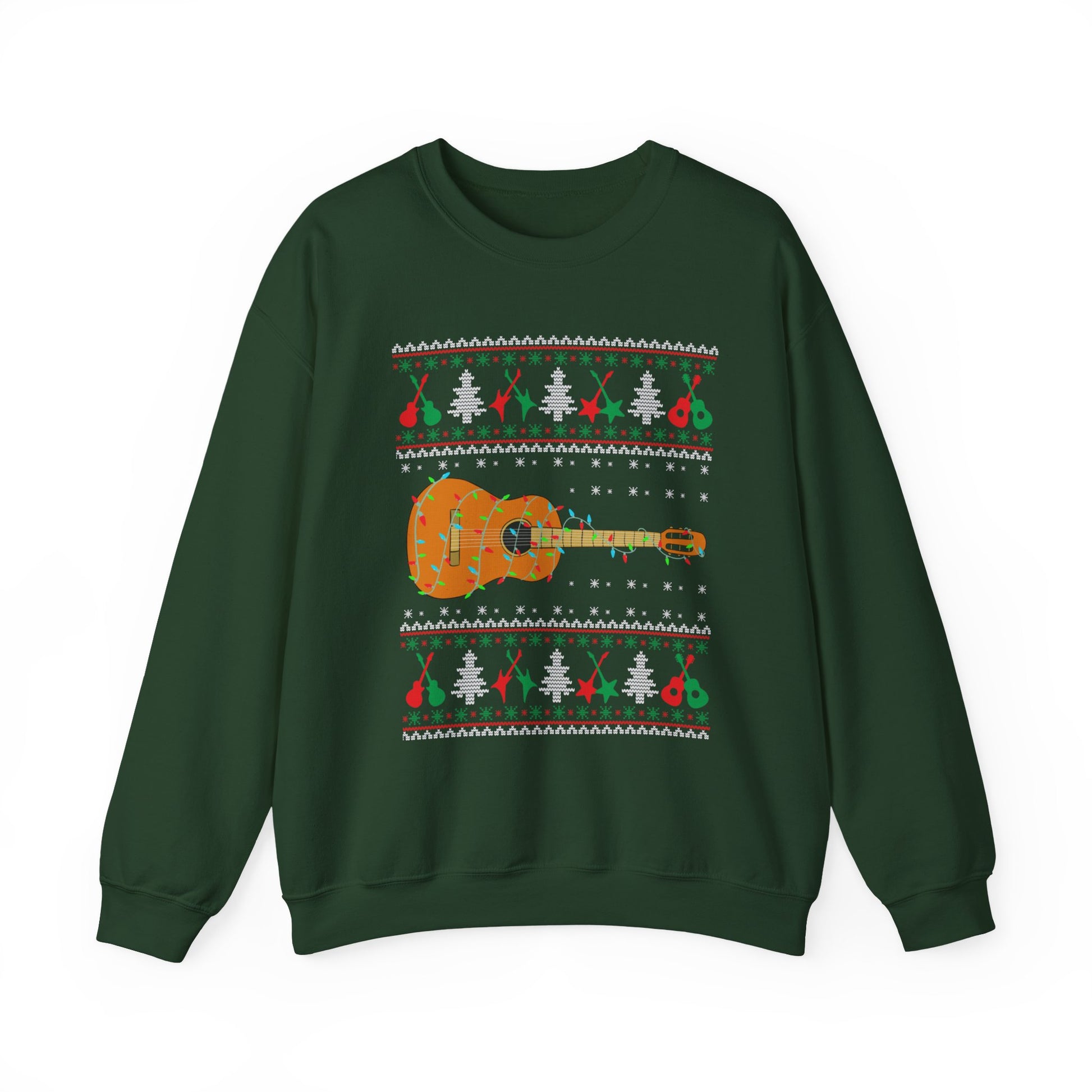 Acoustic Guitar Holiday Sweatshirt – Festive Guitar Ugly Sweater Crewneck