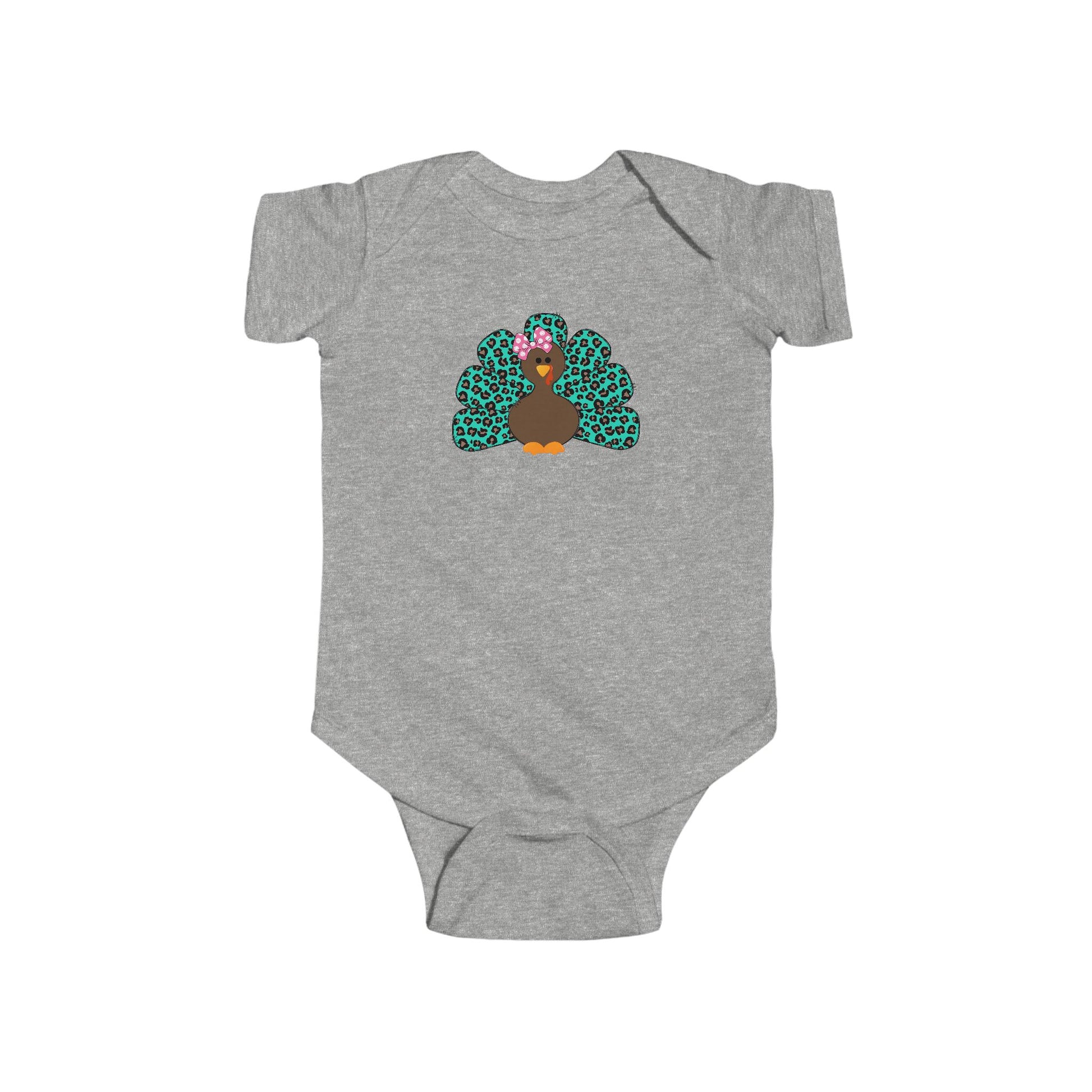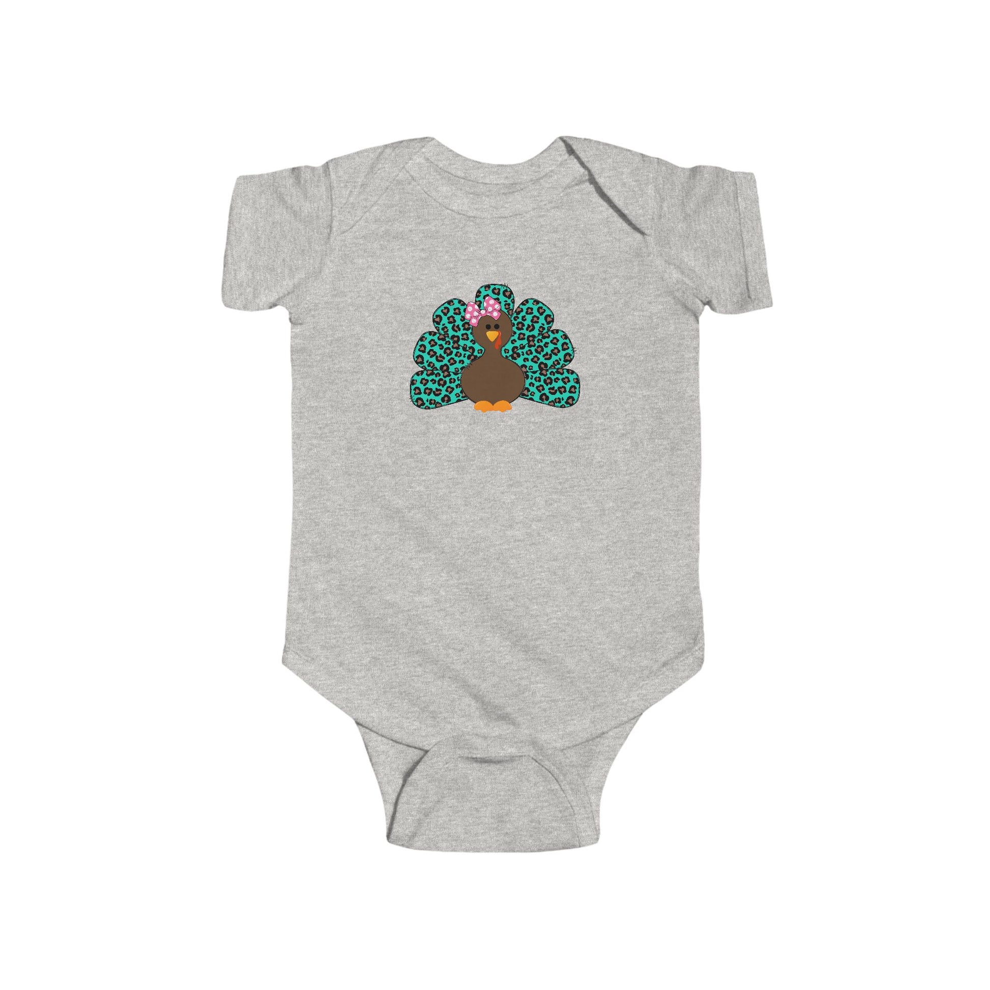This adorable infant fine jersey bodysuit is the perfect blend of comfort and style for your little one. Made from ultra-soft cotton, it feels gentle against delicate skin. The charming design delivers a playful vibe that captures the joy of childhood. Ideal for everyday wear, this bodysuit can also be a cute addition to holiday celebrations, birthdays, and family gatherings. Targeted towards parents looking for quality infant apparel, it offers a delightful way to dress up your baby for special occasions while ensuring comfort and ease of movement. Celebrate moments with your little cherub in this lovely bodysuit!