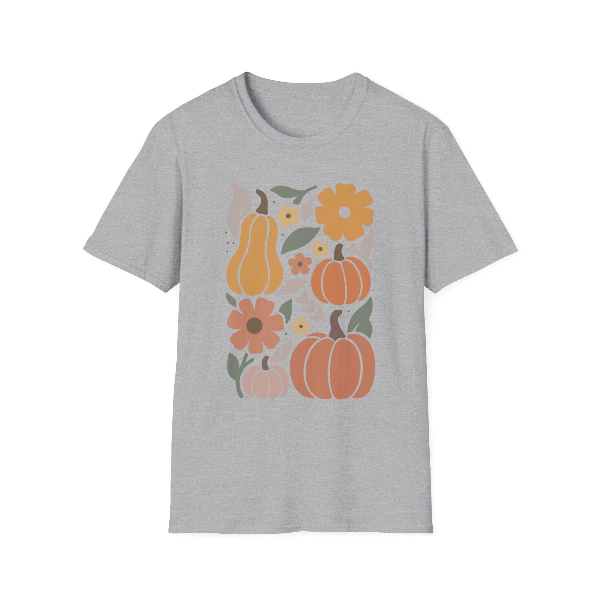 Autumn Floral T-Shirt, Cozy Fall Tee, Harvest Graphic Shirt, Seasonal Gift, Pumpkin and Flower Design, Thanksgiving Apparel