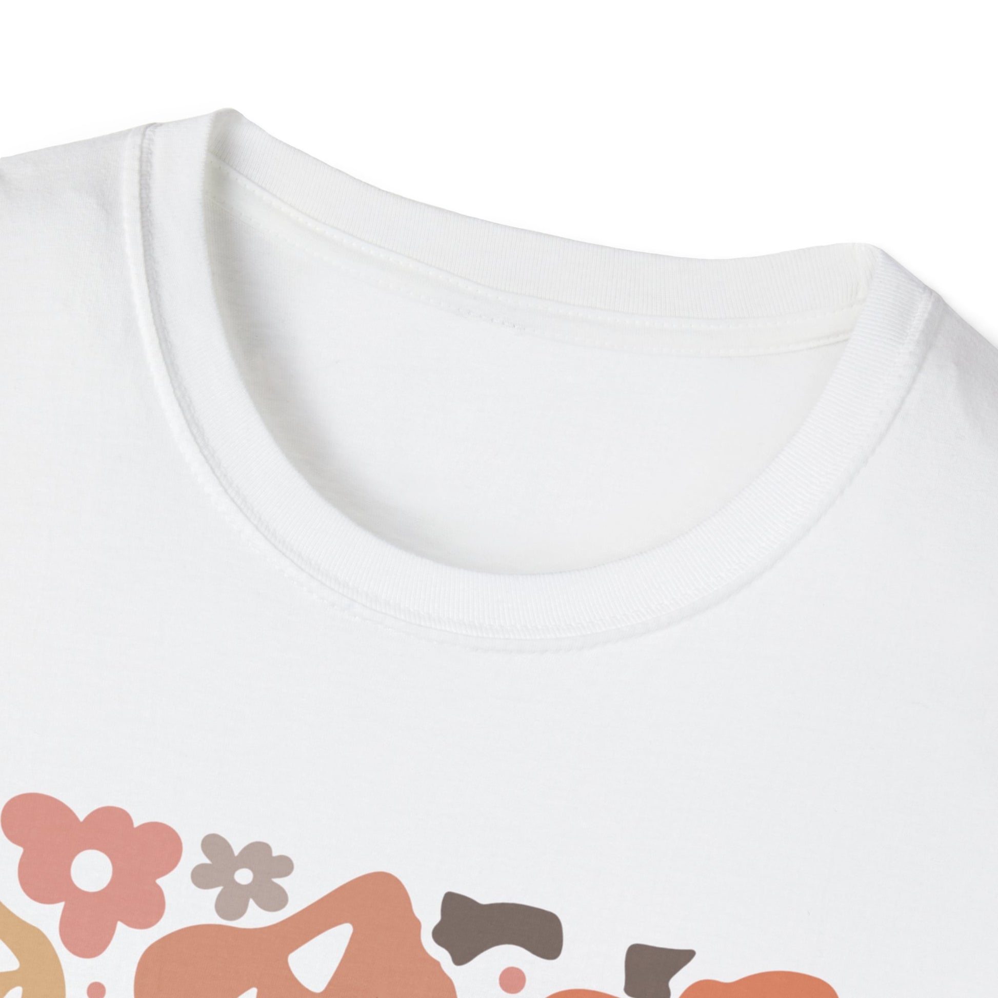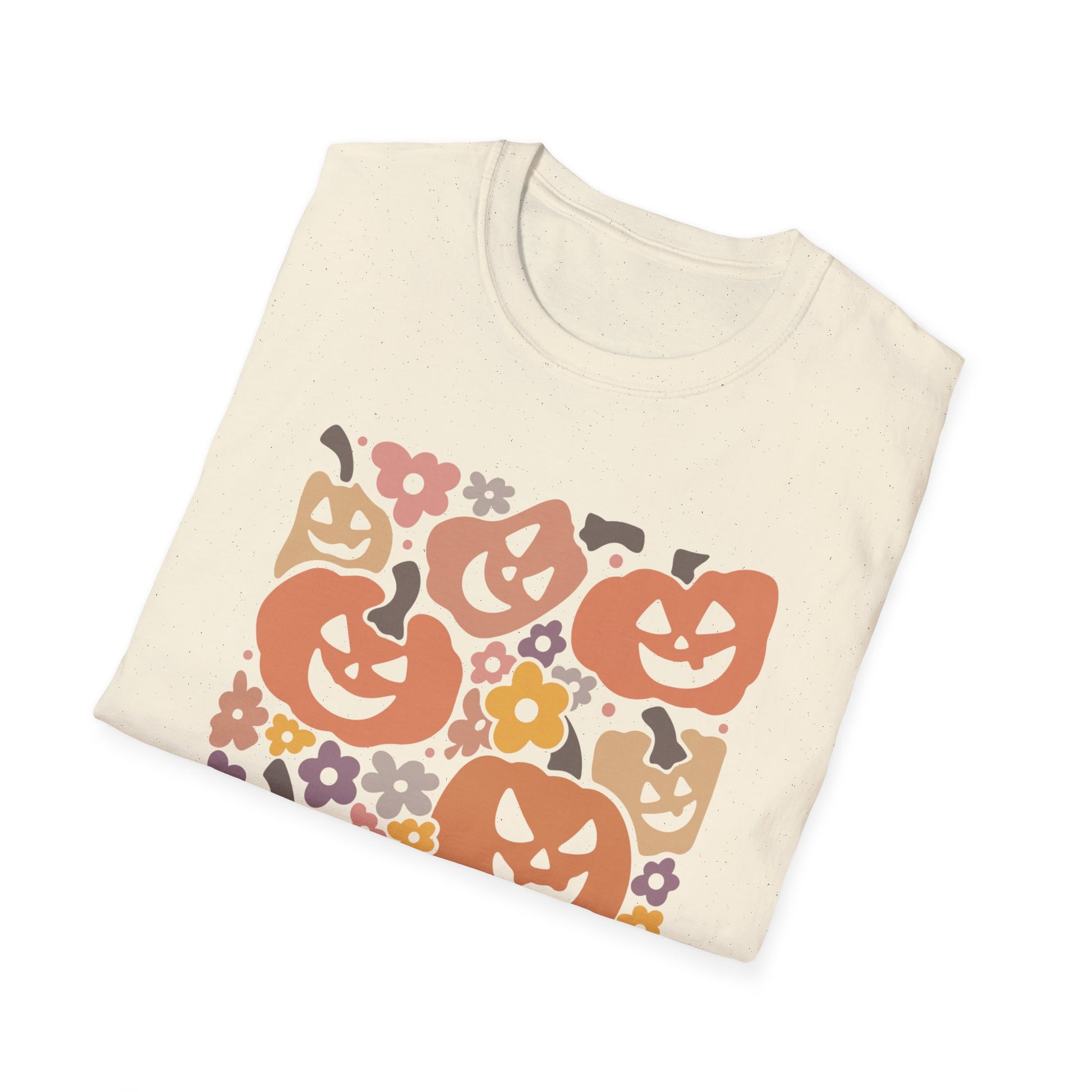 Embrace the spirit of the season with this charming Unisex Softstyle T-Shirt, perfect for spreading joy and warmth. Featuring a playful design adorned with pumpkins and blooming flowers, this tee brings a fun, festive vibe to your wardrobe. Ideal for gatherings, casual outings, or cozy holidays, it invites you to celebrate autumn in style. Whether you're pumpkin picking, hosting a fall-themed party, or simply enjoying a crisp day outdoors, this t-shirt offers comfort and style. It’s a great gift for friends, family, or anyone who loves seasonal festivities. Suitable for adults, it’s perfect for Halloween, Thanksgiving, or any autumn celebration!