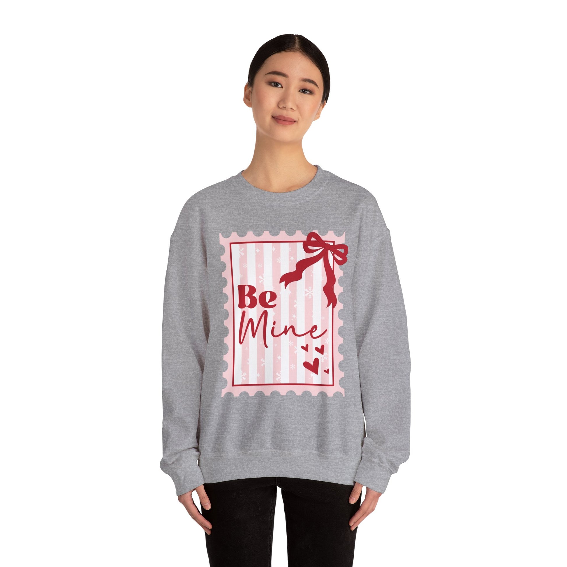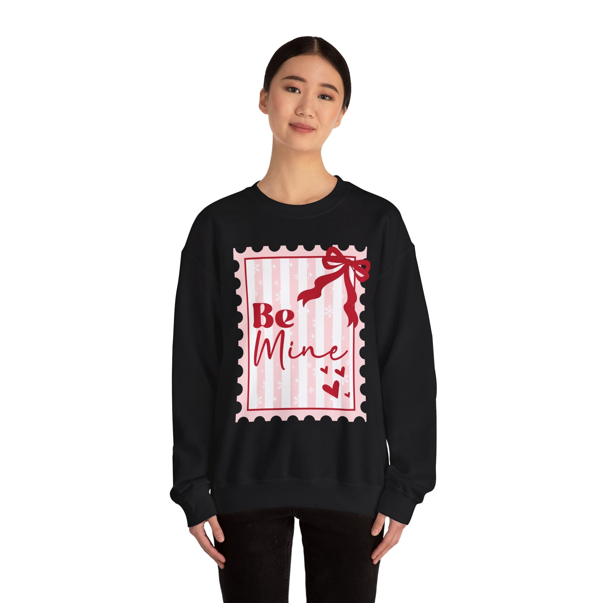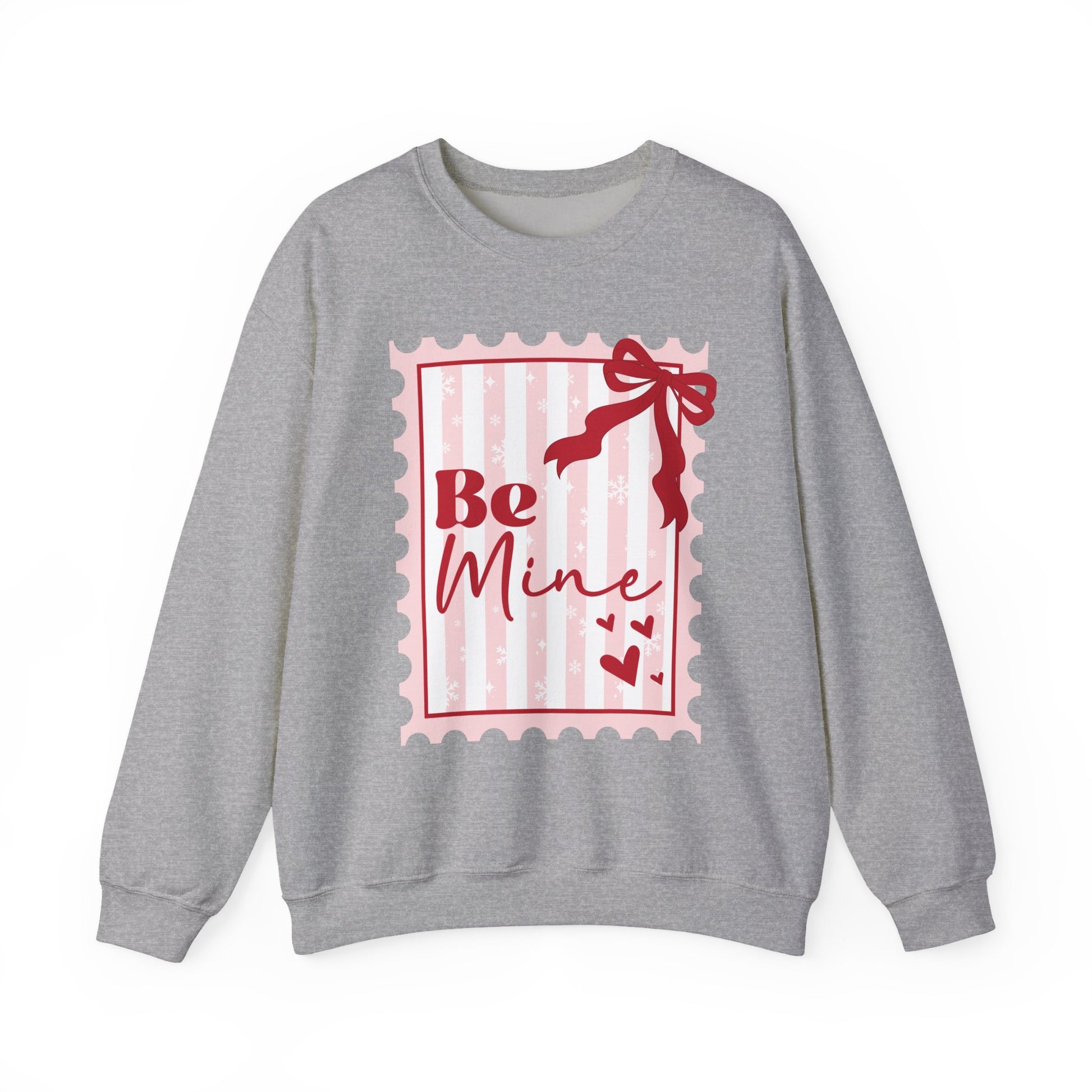 This cozy crewneck carries a warm, handwritten message: a soft-pink postage-stamp frame, striped background and a flowing bow, with “Be Mine” written in gentle script. It feels like a quiet, thoughtful Valentine — the kind you wear while making coffee on a slow morning, wrapping presents, or strolling through a neighborhood of twinkling lights. The medium-heavy cotton blend and tubular knit give it a lived-in softness that still holds its shape. Subtle embroidery options (left chest, center, or wrist accents) add a handcrafted touch that reads personal, not flashy. Wear it to slow down, send a simple message, and lean into small, affectionate moments.