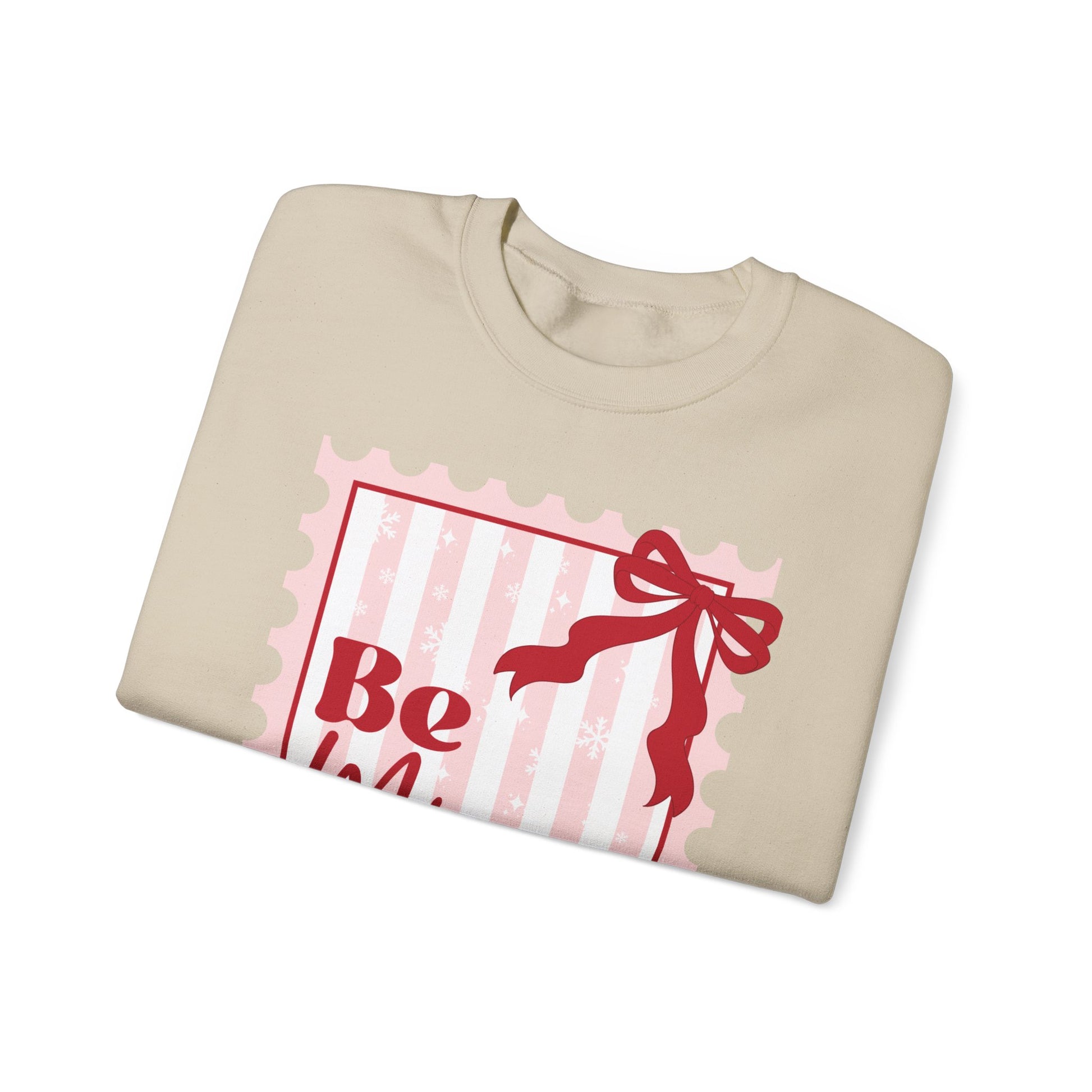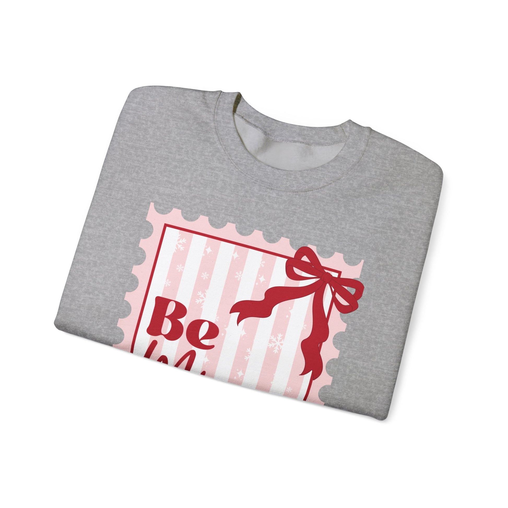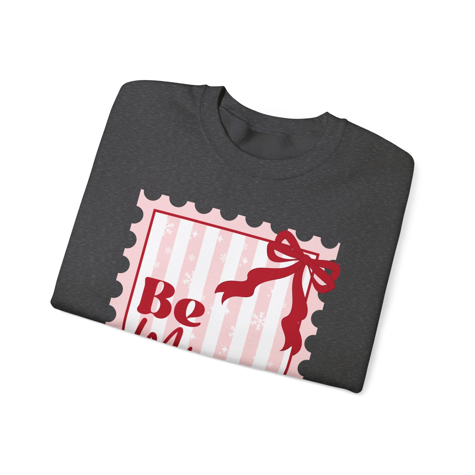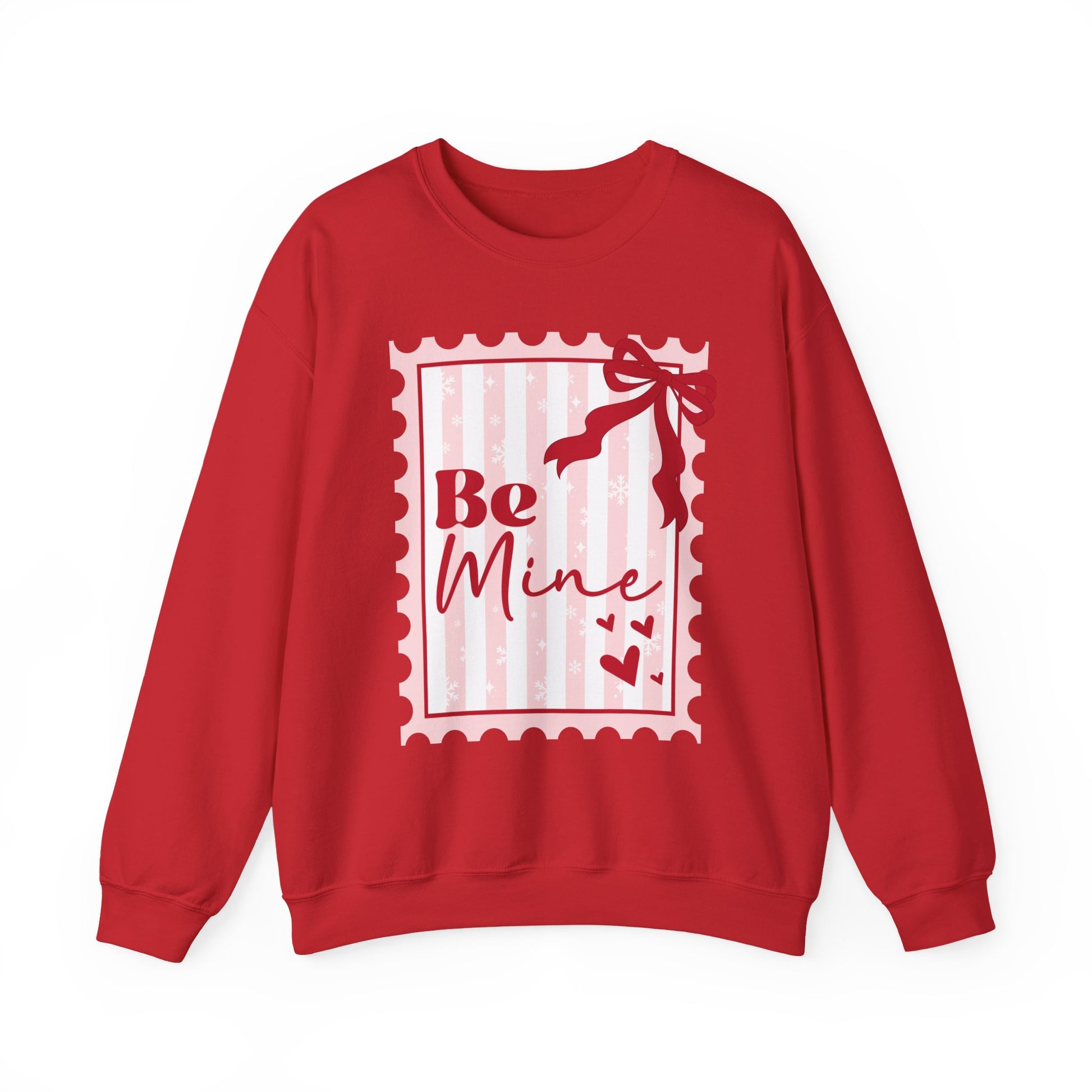 This cozy crewneck carries a warm, handwritten message: a soft-pink postage-stamp frame, striped background and a flowing bow, with “Be Mine” written in gentle script. It feels like a quiet, thoughtful Valentine — the kind you wear while making coffee on a slow morning, wrapping presents, or strolling through a neighborhood of twinkling lights. The medium-heavy cotton blend and tubular knit give it a lived-in softness that still holds its shape. Subtle embroidery options (left chest, center, or wrist accents) add a handcrafted touch that reads personal, not flashy. Wear it to slow down, send a simple message, and lean into small, affectionate moments.